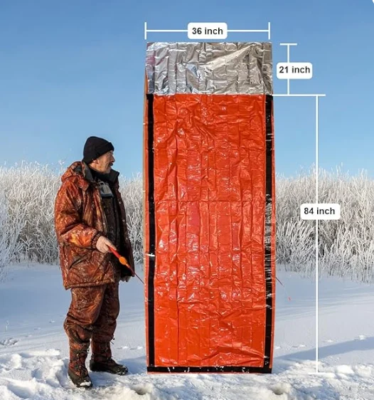 Jakar ta gaggawa ta gaggawa za ta iya ƙara yawan yuwuwar ku a cikin kowane yanayi, duk yanayi da duk yanayi. An yi shi ne da mai dorewa maissuling kayan Mylar wanda aka tsara don binciken sararin samaniya. Yana riƙe / yana nuna baya 90% na zafin jiki. An sake amfani dashi, mai hana ruwa da iska.