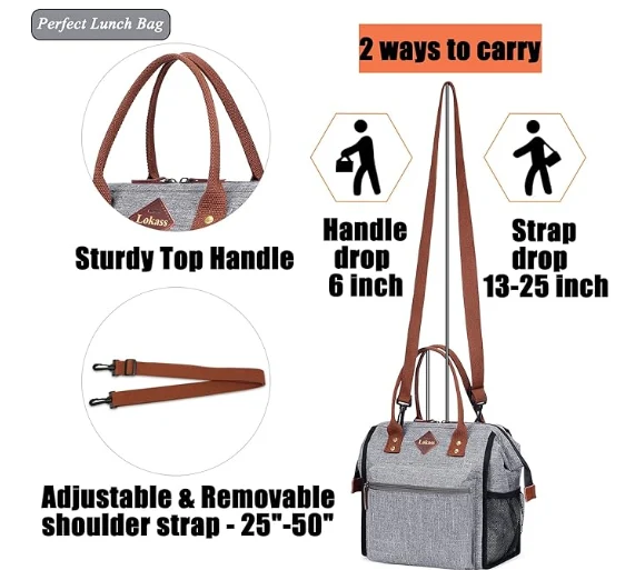 Babban jakar cin abincin rana yana da babban ɗakin cin abinci (10.5 "x6" x12 "), aljihun zipper na gaba (8" X7 "), aljihun baya (9.5") da aljihun raga 2. Manyan hannu da daidaitacce & daidaitawa & cire madauri (25 "-50") don ɗauka mai sauƙi.