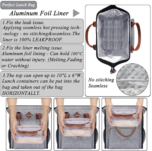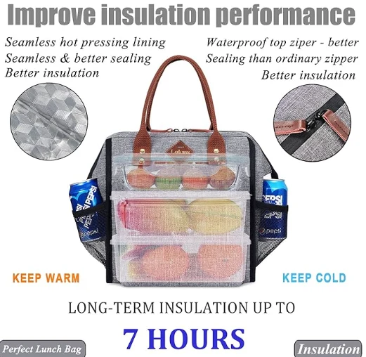 A waje aluminum foil bag.long-lokaci rufi - saboda rufin rufin da kuma rufin mai hana ruwa, wannan akwatin abincin da aka sanya yana da babban hatimin yana da babban hatimin kuma an yi shi. Lokacin kiyaye abinci da abin sha mai sanyi / dumi na 7 hours don aiki, tafiya, ko jin daɗin aiki, yin kayan mu na ci gaba da yin farin ciki.