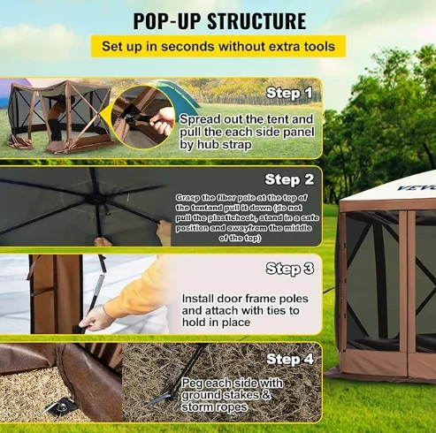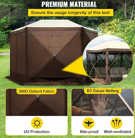 Rainproof Pergola zango alfarwa, zangon sansanin Gilashin an yi shi da yadudduka na Oxford 300D. ITPX3 Wace -roof, ciji-hujja, da UV-hujja. A 12 'X 12' Gazeb Canippy yana samar da babban sarari don amfani da tsari na waje.