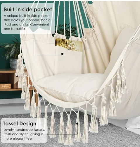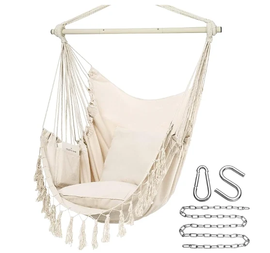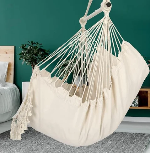 Dinki rating parachute hammock.Zaka rataye shi kowane lokaci, ko'ina. Kawai sami reshe, katako ko hammock firam, babban kujera kujera a waje ko ciki., Ltd. Zaka iya yin bimbini ko jin daɗin shimfidar wuri. Ya dace sosai da amfani a ɗakunan dakuna, a matsayin kayan ado na dakin, baranda, farfajiya, da lambuna. Idan kuna buƙatar dawowa, kar a cire alamar daga kujera mai lilo