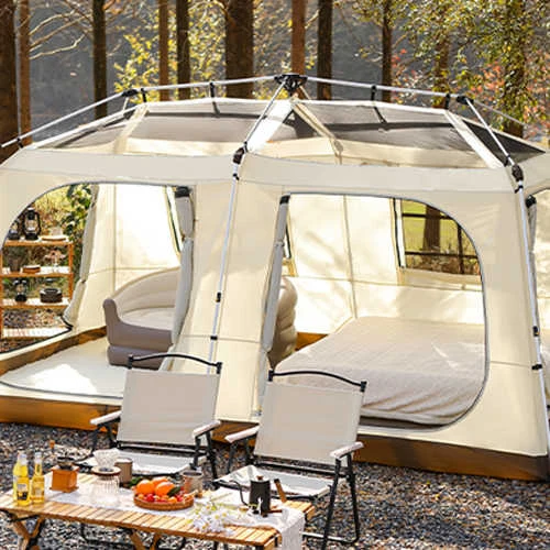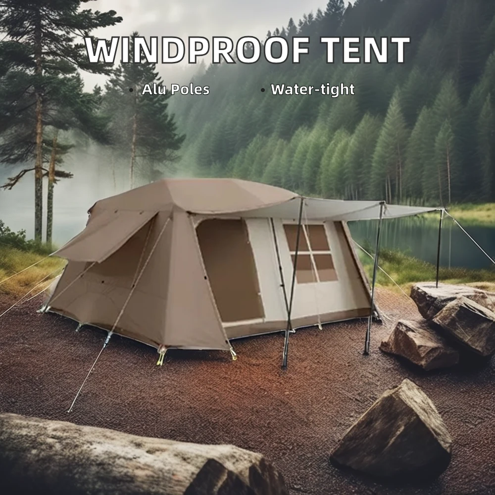 Waterproof Camping Tents. Tabbatar gyara murhu da igiyoyin iska da iska, zai zama mafi tsayayye fiye da atomatik da ke haifar da kayan aiki na gaba ɗaya, alamomin polymhane pasc, alfarwar ta tabbatar da PU1500m ruwa-ruwa-resistant. The tent stays completely dry in rainy days. Ideal for outdoor camping, hiking, fishing in all weather.